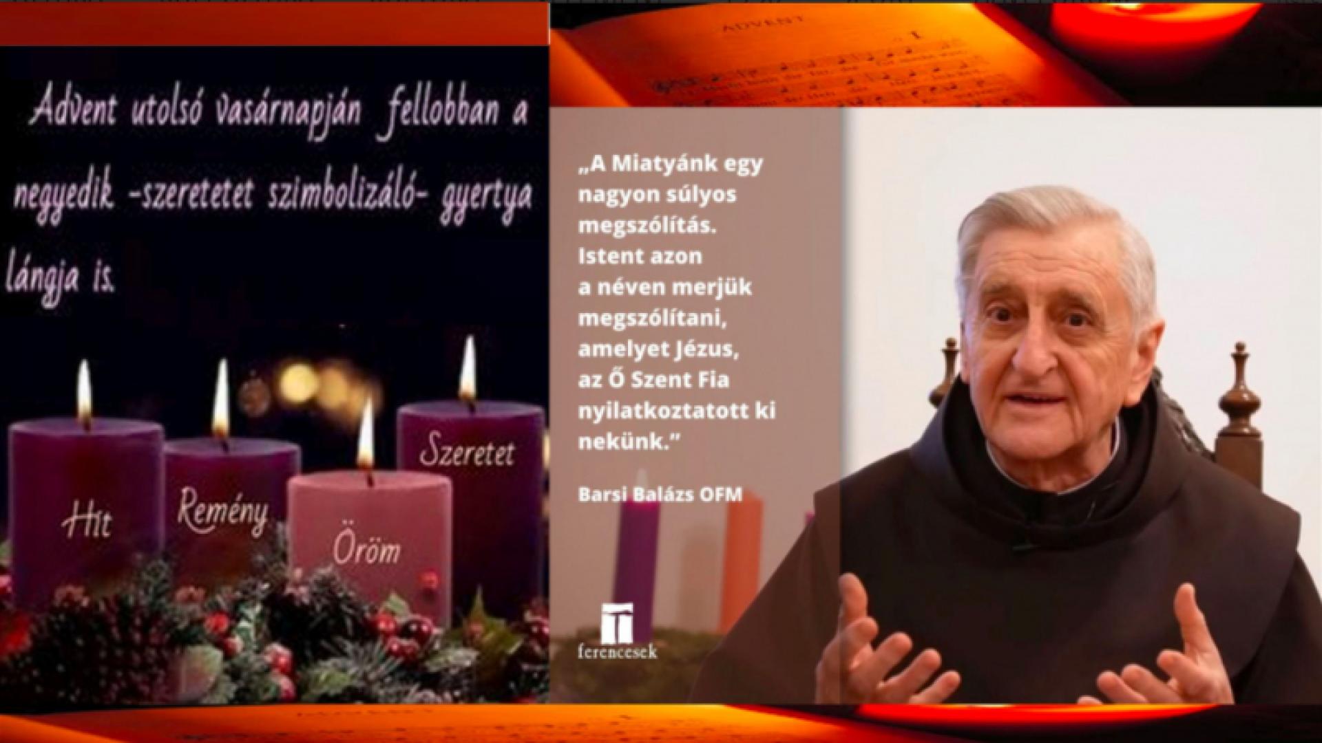 P.HOVÁN ÁGOSTON OFM: A mi időnk Isten mérhetetlen türelmének az ideje lett, amely sokszor az Ő híveit teszi próbára, és nem az ellenségeit. A hitetlenek visszaélnek Isten türelmével, bennünk pedig az a kérdés merülhet fel, hogy miért engedi meg Isten a bűnt, miért nem tesz már végre rendet? Legyünk hálásak, hogy az Úr megadta nekünk a várakozás örömét! Ő azért jött, hogy megmentsen a bűntől. Eljövetelével magával hozta a bűnök bocsánatát. Megújítja életünket, hogy az értelmes, céltudatos és értékes legyen.